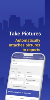 The app includes contractor details, site information, work performed, subcontractor progress, issues and punch lists, reasons for delays, additional work or change requests, materials purchased and received, labor and travel hours and more. The app captures weather conditions, locations, date and time, amount of labor performed and other field related information anytime from anywhere.