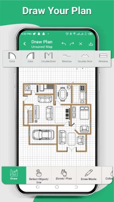 Floor Planner Provides complete details of room size, room types, size of walls and everything in detail, which helps you draw your home. You don’t need an architect for your home Design everything is available in the Draw Floor Planner app