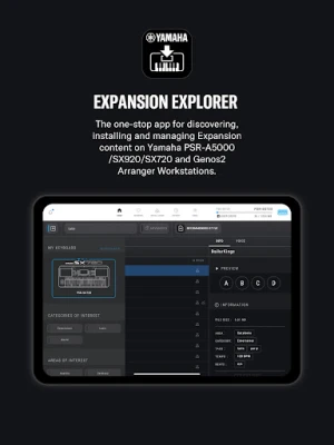 Contents already installed by Yamaha Expansion Manager into the Expansion area of your keyboard, including pre-installed content in PSR-SX920 and 720, will be removed when installing new content from Yamaha EXPANSION EXPLORER.