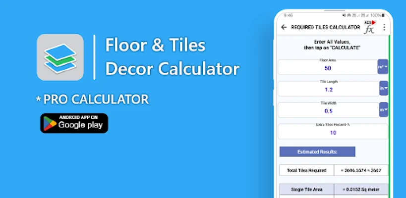 Renovating your home? Installing new tiles? Floor & Tiles Decor Calculator is the ultimate tool to help you get accurate estimates for your flooring project! No more guesswork—calculate the required tiles, determine tiles gap joints, and measure the grout quantity effortlessly.