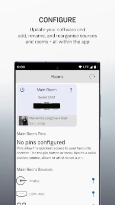 Regular, free, over-the-air software upgrades bring performance and feature enhancements to your Linn streamer. It’s easy to ensure your system is always up-to-date with the latest version directly within the app. The ability to manage and rename sources and rooms is embedded in the app settings screens too.