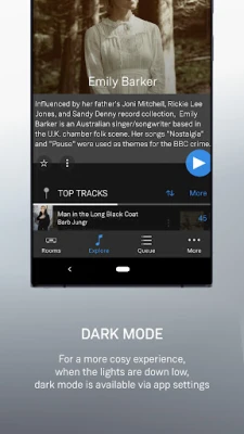 For a more cosy experience, when the lights are down low, dark mode is available via app settings.