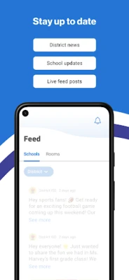 DISTRICT UPDATES In the Live Feed is where you'll find updates from the administration about what's going on in the district right now. Whether that's celebrating a student's success, or reminding you about an upcoming deadline.
