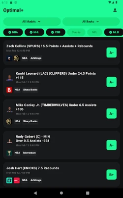 Optimal uses proprietary algorithms to calculate the expected value for various types of sports picks including Player Props, Over/Unders, Spreads, and Moneylines. Optimal processes the best odds from a number of books (including FanDuel and DraftKings) to help you find winners. Sports picks is a difficult game, and we are here to be your guiding hand.
