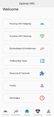 Boost your health and well-being with Optimal HRV, the cutting-edge Heart Rate Variability (HRV) tracking and biofeedback app designed to help you monitor, analyze, and improve your HRV scores. Our easy-to-use app provides personalized training, biofeedback, and stress-reducing activities tailored to your unique needs.