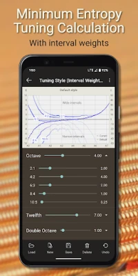 • Custom tuning styles: create a custom tuning curve by adjusting interval weighting and stretch
