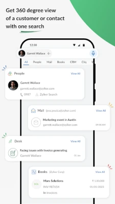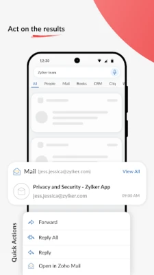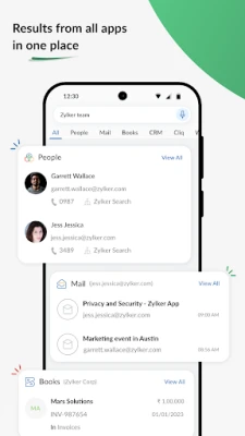 Zia Search - A unified search app for 20+ Zoho apps. With Zia Search, you can fetch you results from CRM, Mail, Desk, Books, WorkDrive, Cliq, Notebook, and other Zoho apps in one go. No more switching between multiple apps to find relevant information.